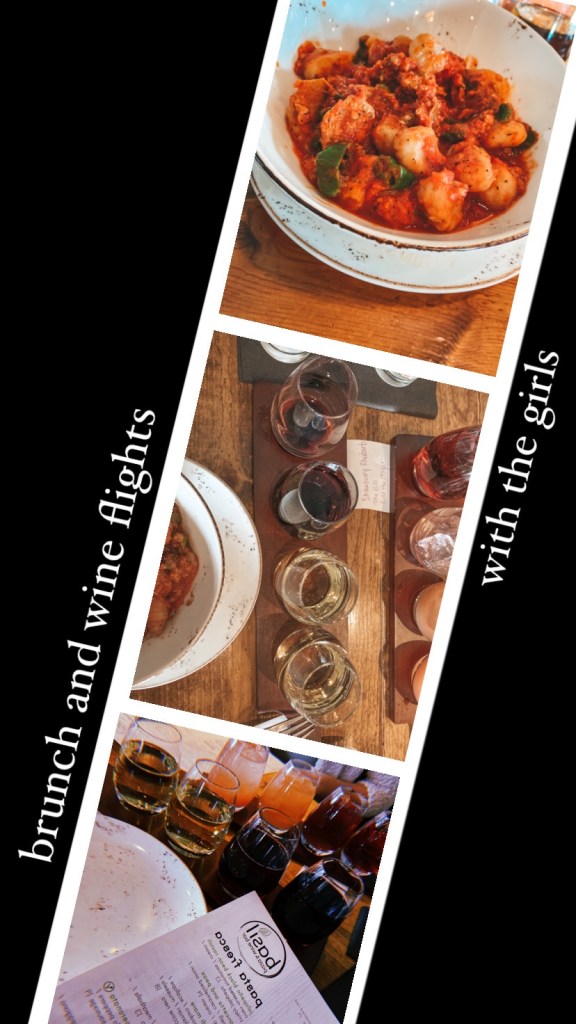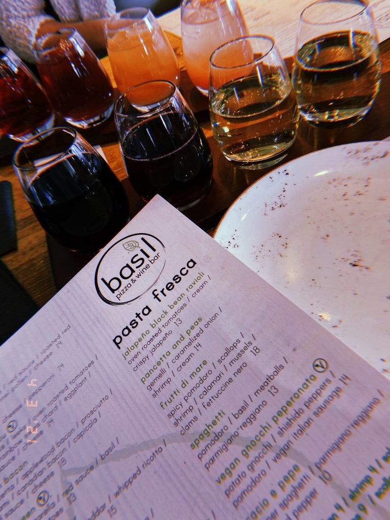 I went to Basil Pizza and Wine Bar in Perrysburg (OH) this past weekend with some of my girlfriends for lunch. My girlfriend Allison and I got wine flights 🍷 while my girlfriend Kate got a fruity sangria 🍹