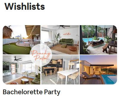 So how did I narrow down where I wanted to go & stay? Easy, I made a list of places I would like to go for my bachelorette party. I created an AirBnB account (it’s free) and searched the locations I would like to go and saved the places that I would like to stay in to a list titled “Bachelorette Party”.